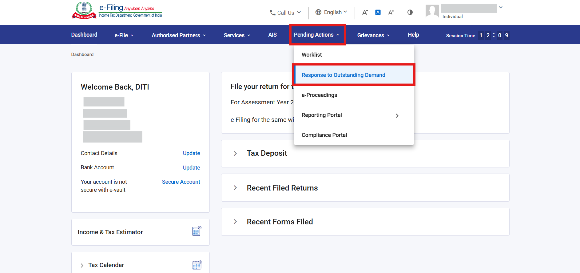 You can also log in to the Income Tax portal and navigate to Pending Actions, you’ll see these options: